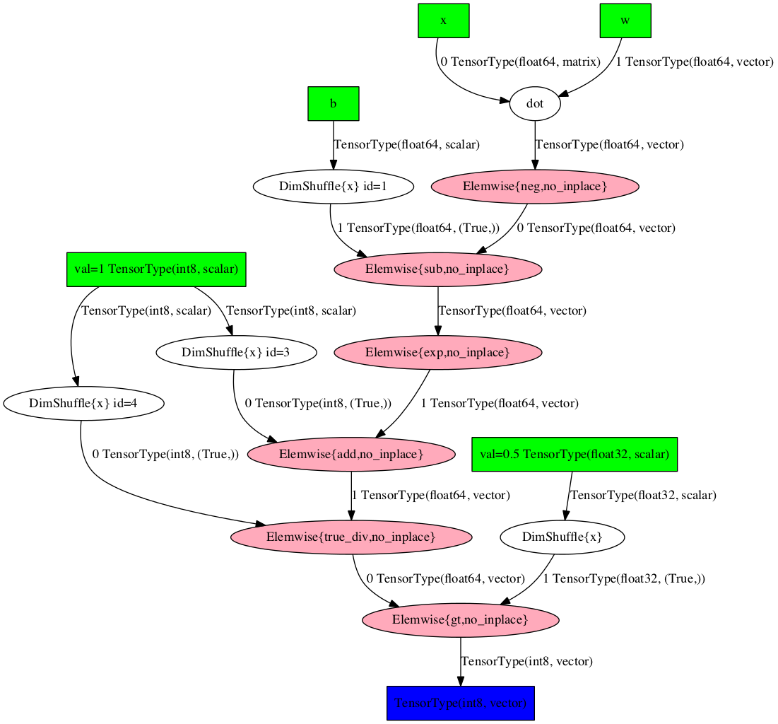 'gt((TensorConstant{1} / (TensorConstant{1} + exp(((-(x \\dot w)) - b)))),